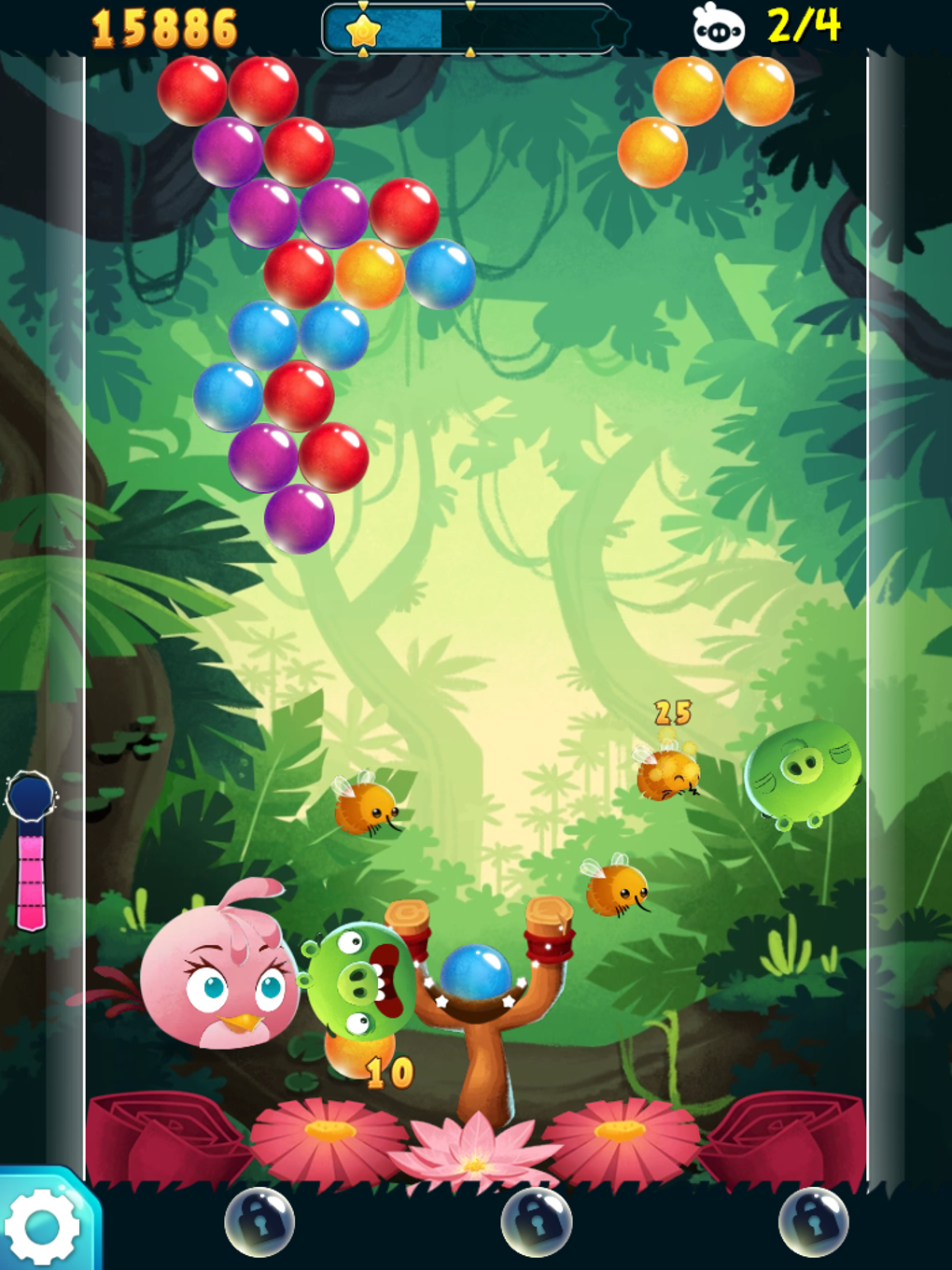 Jugar a Angry Birds Stella POP! es muy sencillo. Siempre tienes un par de burbujas de colores entre las que elegir para lanzar con el tirachinas y un determinado número de tiros según el nivel.